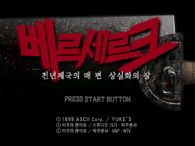 1999년 12월 16일에 발매된, 드림캐스트액션 게임 "베르세르크 천년제국의 매 편 상실화의 장" 의 한글 패치입니다.