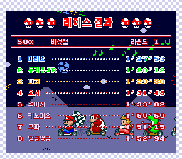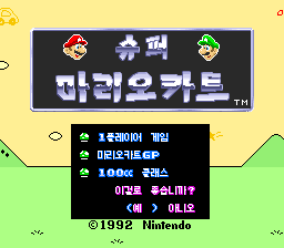 1992년 8월 27일 슈퍼패미컴용으로 발매된 레이싱 게임 "슈퍼 마리오 카트"의 한글 패치입니다.