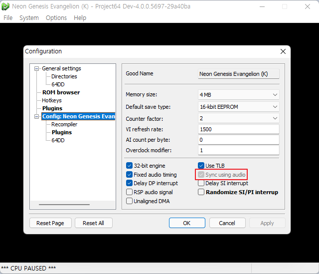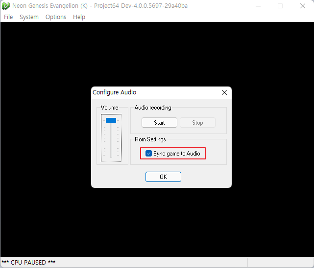 아래의 Sync using audio 또는 Sync game to Audio 옵션을 활성화하고 게임을 플레이해주세요. 게임 전에 이 세팅을 하고 플레이하시길 추천합니다.