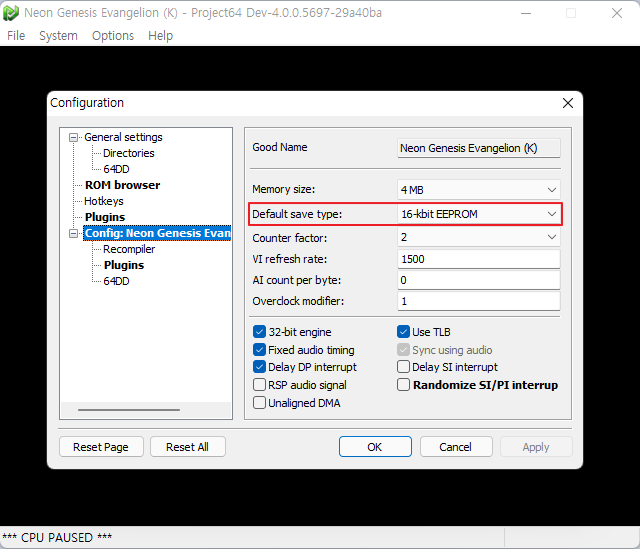 메모장으로 PJ64가 설치된 \Config 폴더 내의 Project64.rdb 을 수정하면 목록에서 정상 표시됩니다. 또는 아래 파일을 다운로드해서 \Config 폴더 내의 Project64.rdb 파일을 덮어 씌우세요.